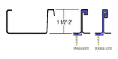 The Mechanical Seam Panel is the most durable, water tight, wind resistant,, and structurally sound standing seam roof system on the market. It also is very labor intensive, making it one of the most expensive. It comes in any width between 9 1/2" and 19 1/2" with a 1 1/2" and 2" standing seam and two separate levels of water tightness. The single lock crimps the top panel's leg over, creating a water-tight seal. The double lock is clamped together with a machine, creating an extra tight seal to keep out water and withstand extreme wind loads. The panels span over open framing up to 2 ft with 24 gauge metal, and up to 4.5 ft with 22 gauge metal, while maintaining waterproof integrity. This system also uses a hidden clip which allows for the thermal expansion of the panel. Once the panel has been double locked, changing a damaged panel is no longer an option. This means the entire section must be replaced.